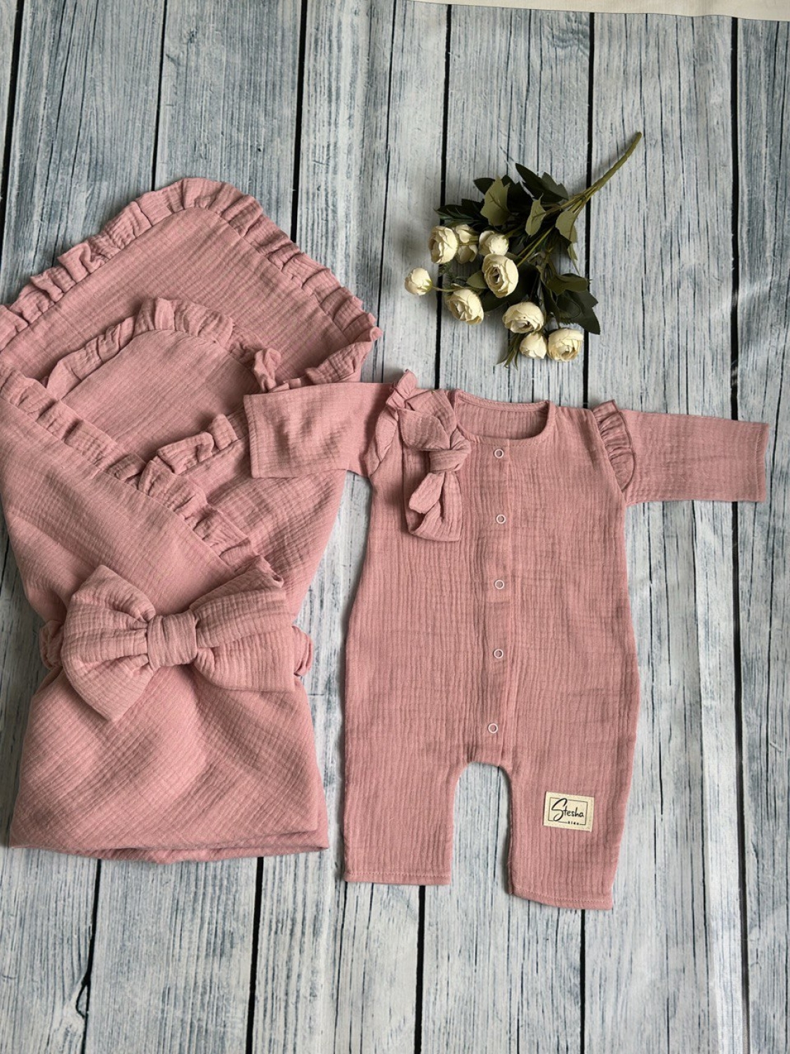 Теги: Купить детские конверты, комбинезон оптом, детские конверты на выписку оптом. 335-П. Комплект из детского комбинезона, р 56 и конверта муслин, хлопок 100% 90/90 см, пудра цена,отзывы официальный сайт "Стеша Пермь"