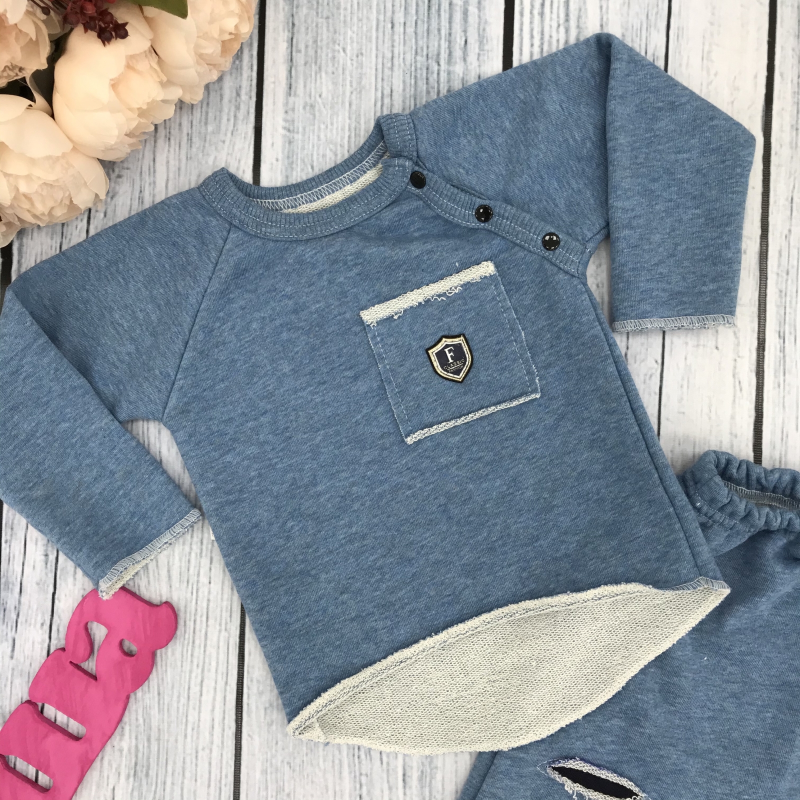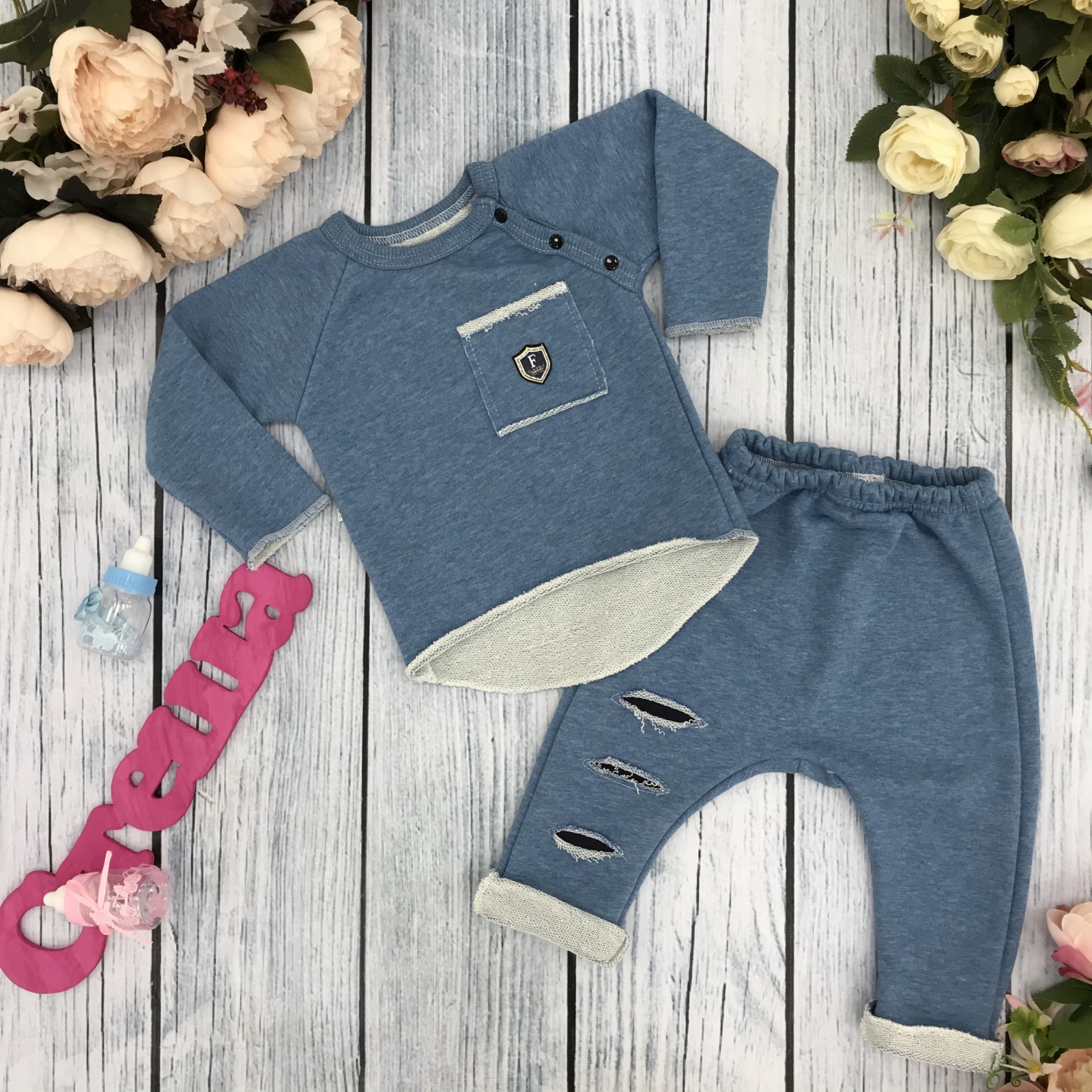 Купить оптом 239. Костюм ясельный, хлопок 65%, 35% ПЭ, 3-х нитка футер без начеса, джинса 74,80,86 в Перми