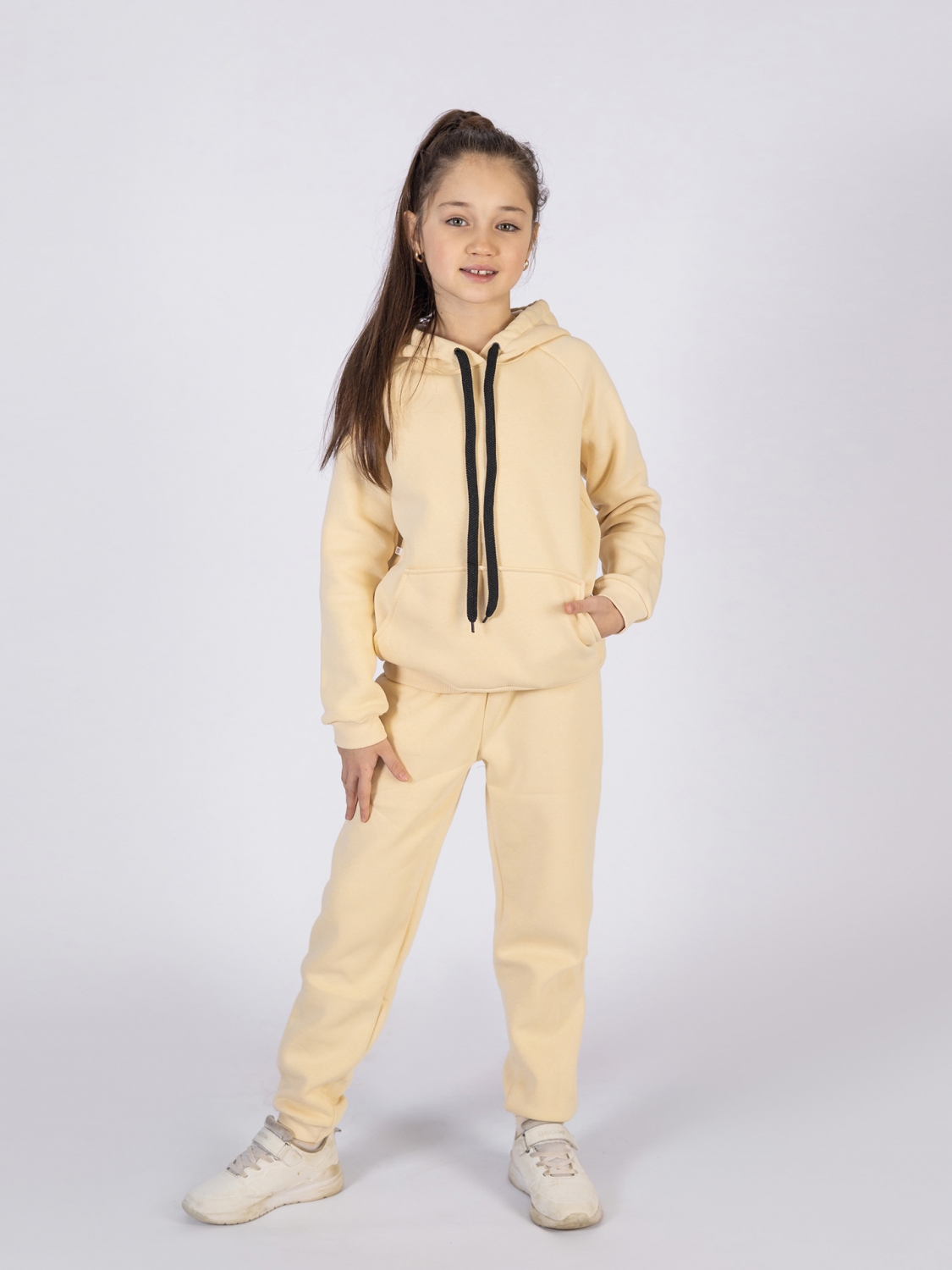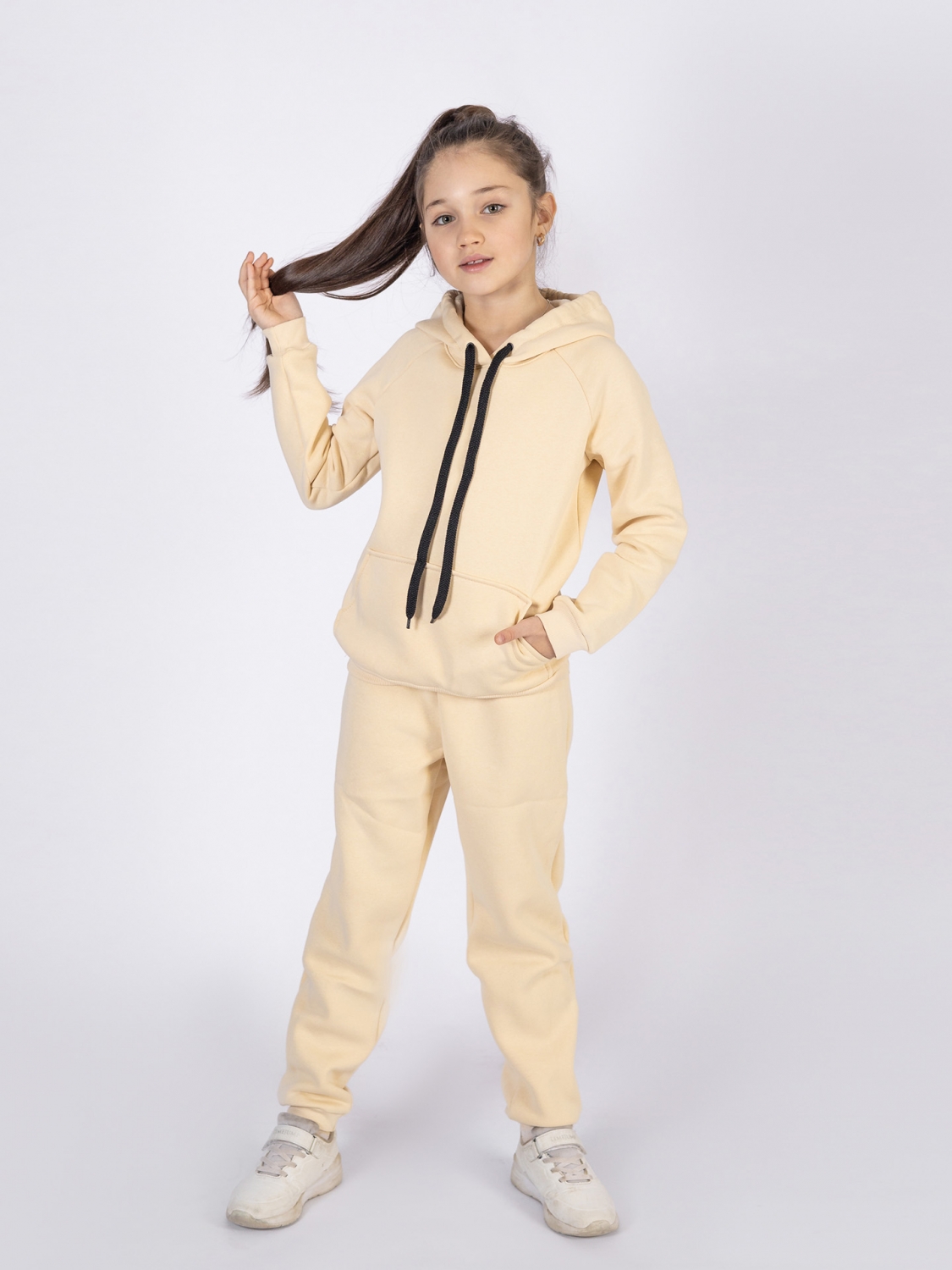 Купить оптом 296-СЛ. Свитшот с капюшоном + Штаны, хлопок 65%, 35% ПЭ, 3-х нитка (начес) сливочный 98,104,110,116 в Перми